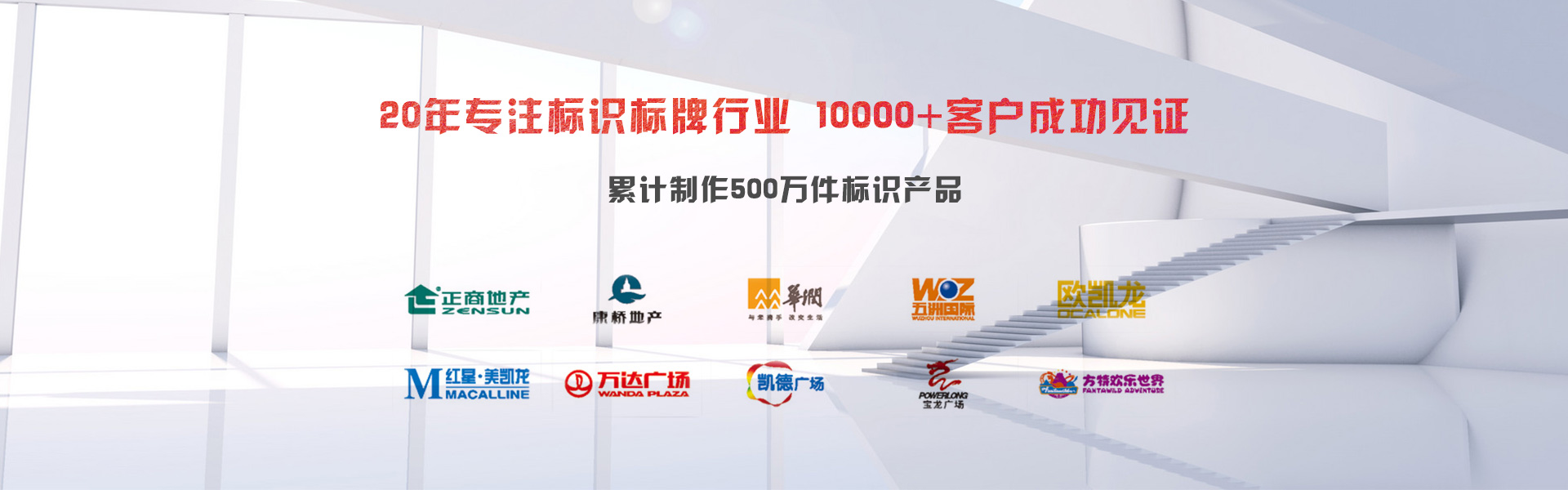 20年專注標(biāo)識標(biāo)牌行業(yè),10000+客戶成功見證,累計(jì)制作超500萬件標(biāo)識標(biāo)牌產(chǎn)品;